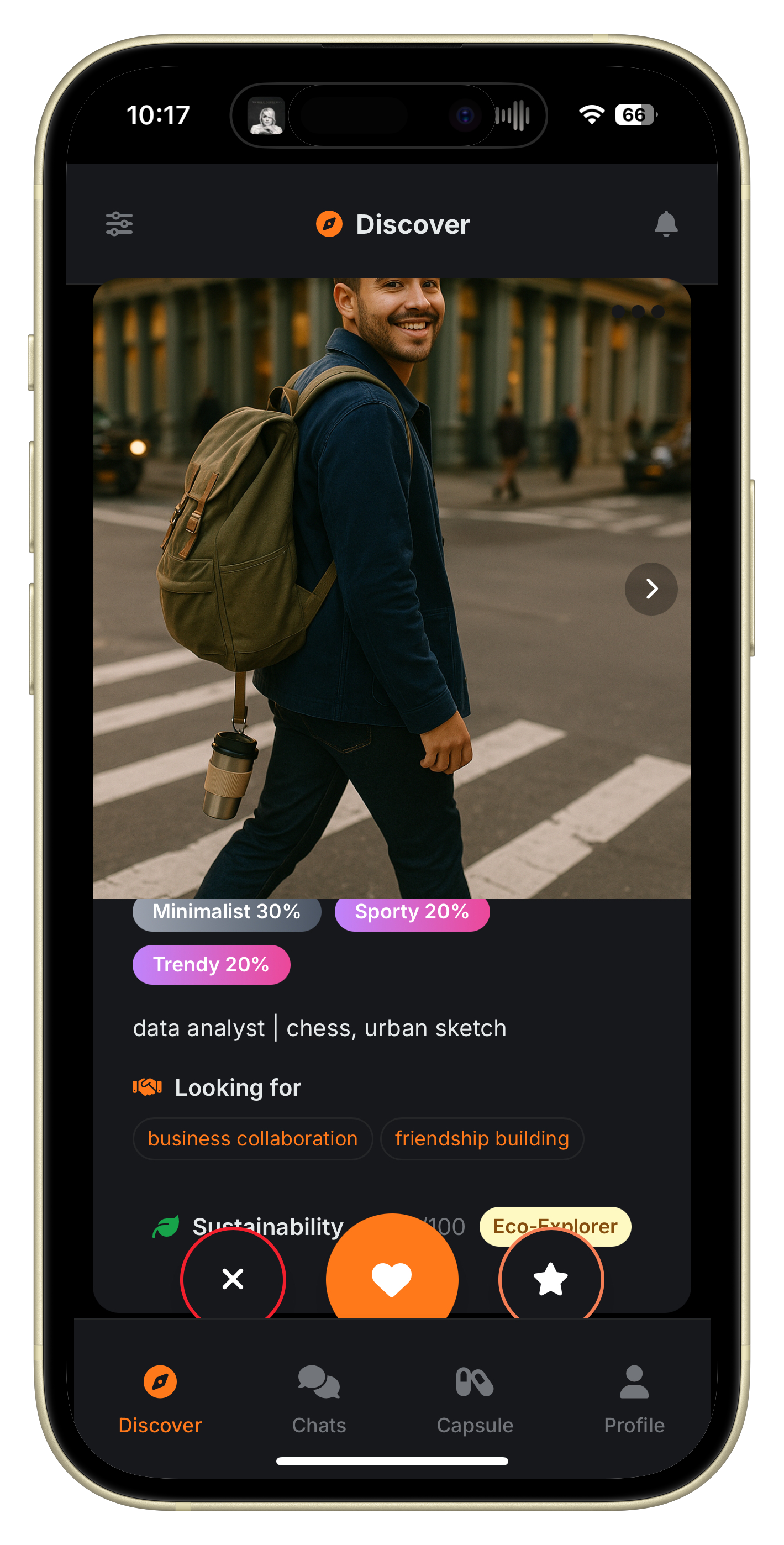 Your Eco-Impact → “Track your sustainability score. Level up your style while reducing waste.”